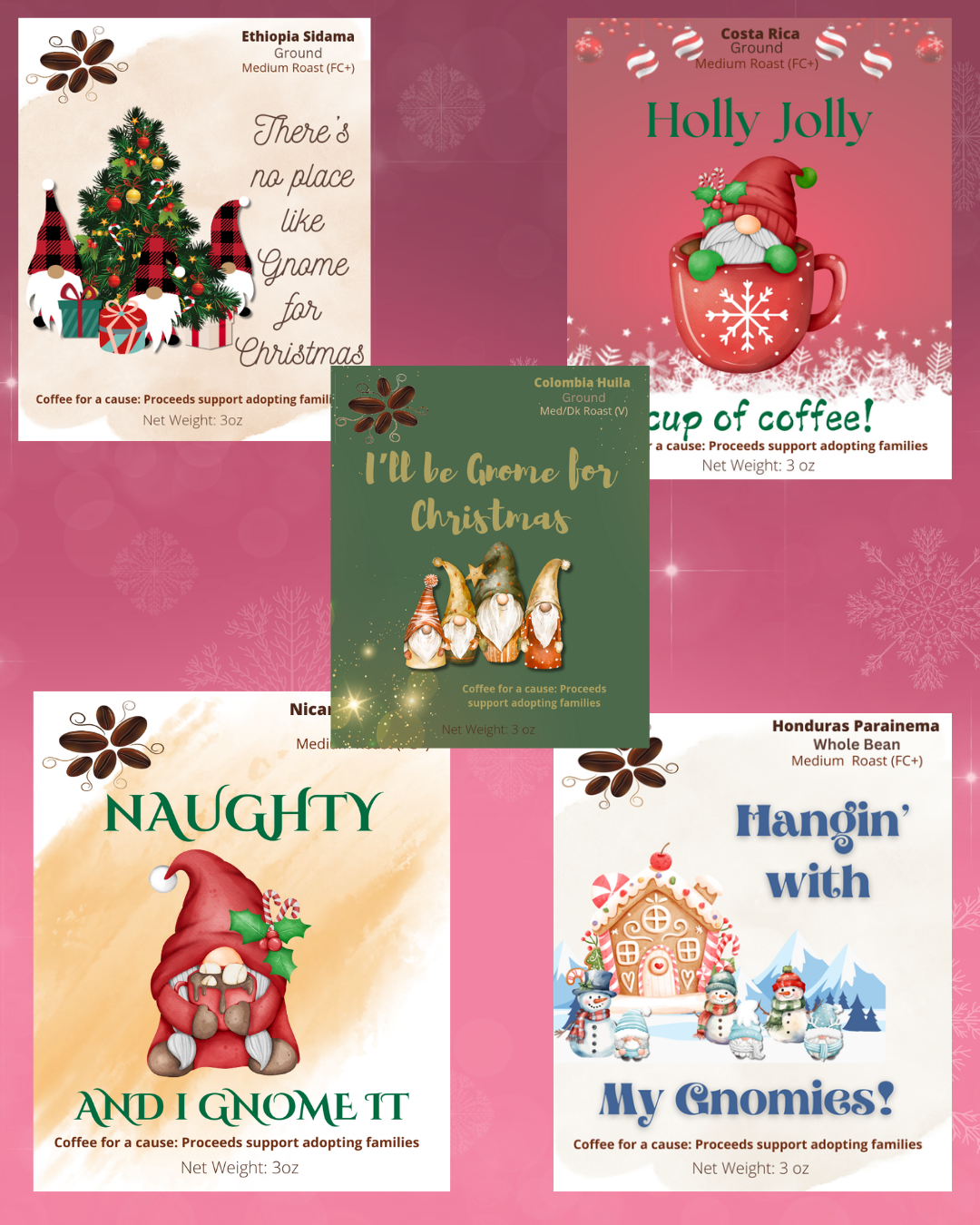 Set of 5 different coffees (3oz ea) for 15 oz total.